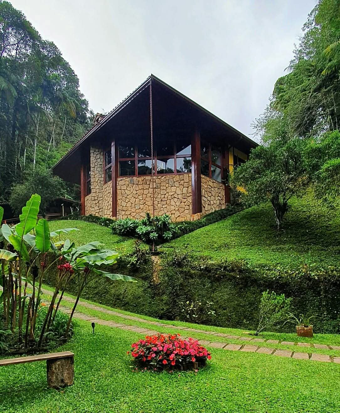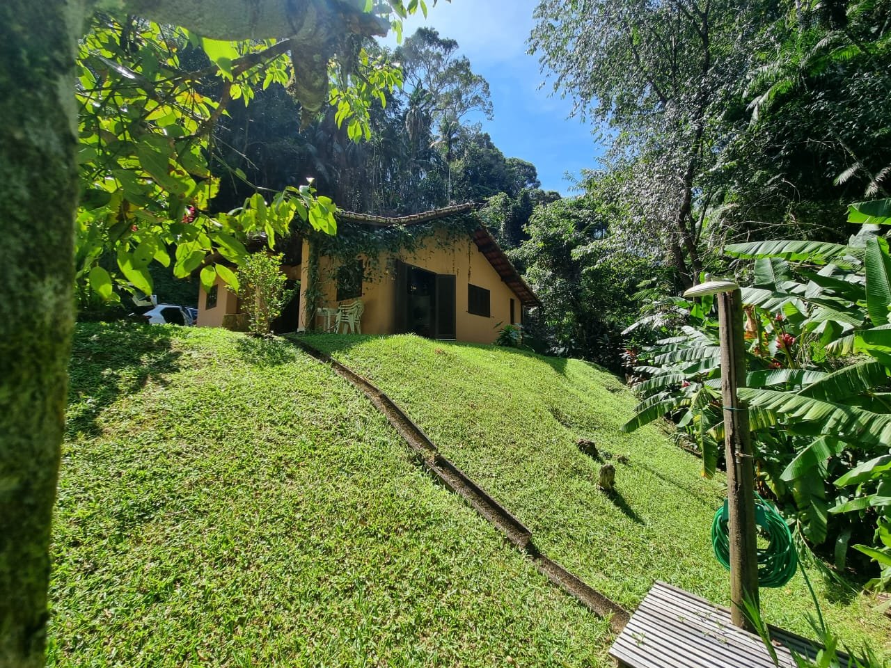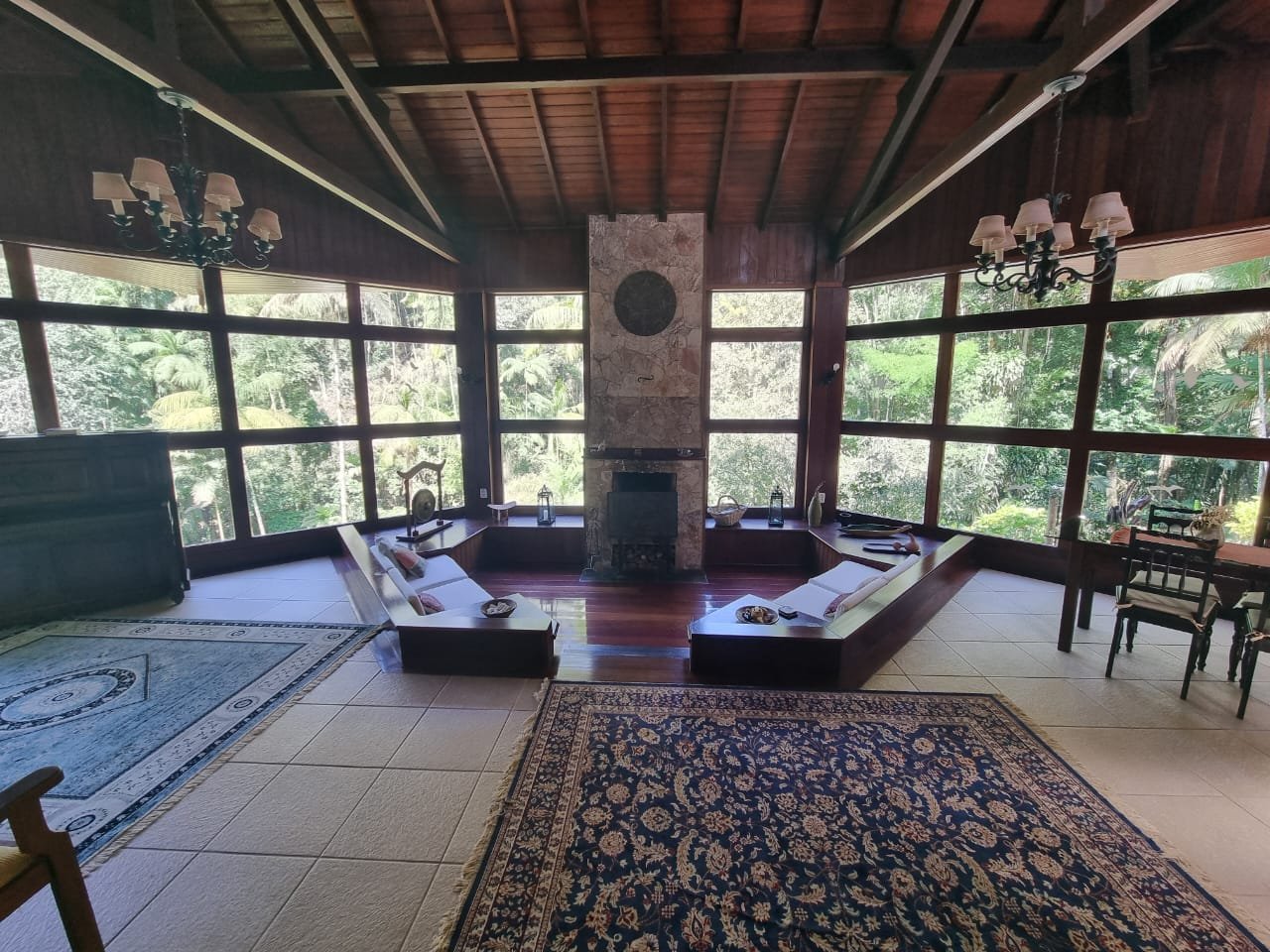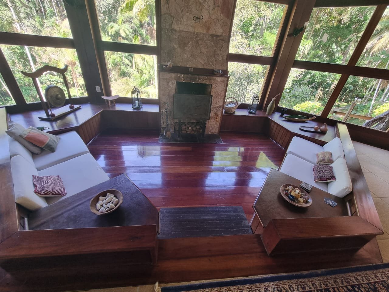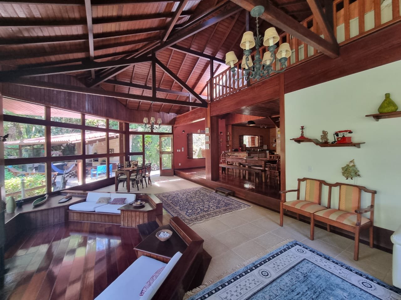 Casa 1 com lindo projeto arquitetura (muita madeira nobre e vidro) explorando a bela natureza.