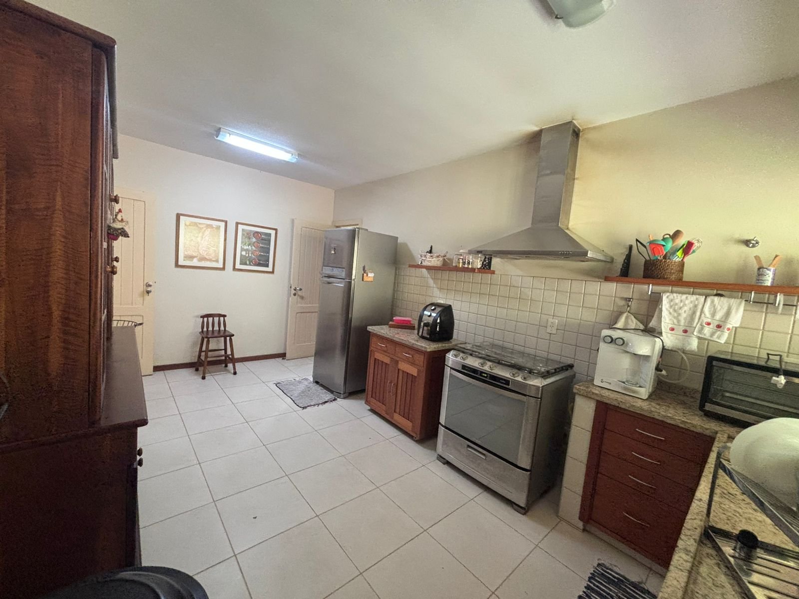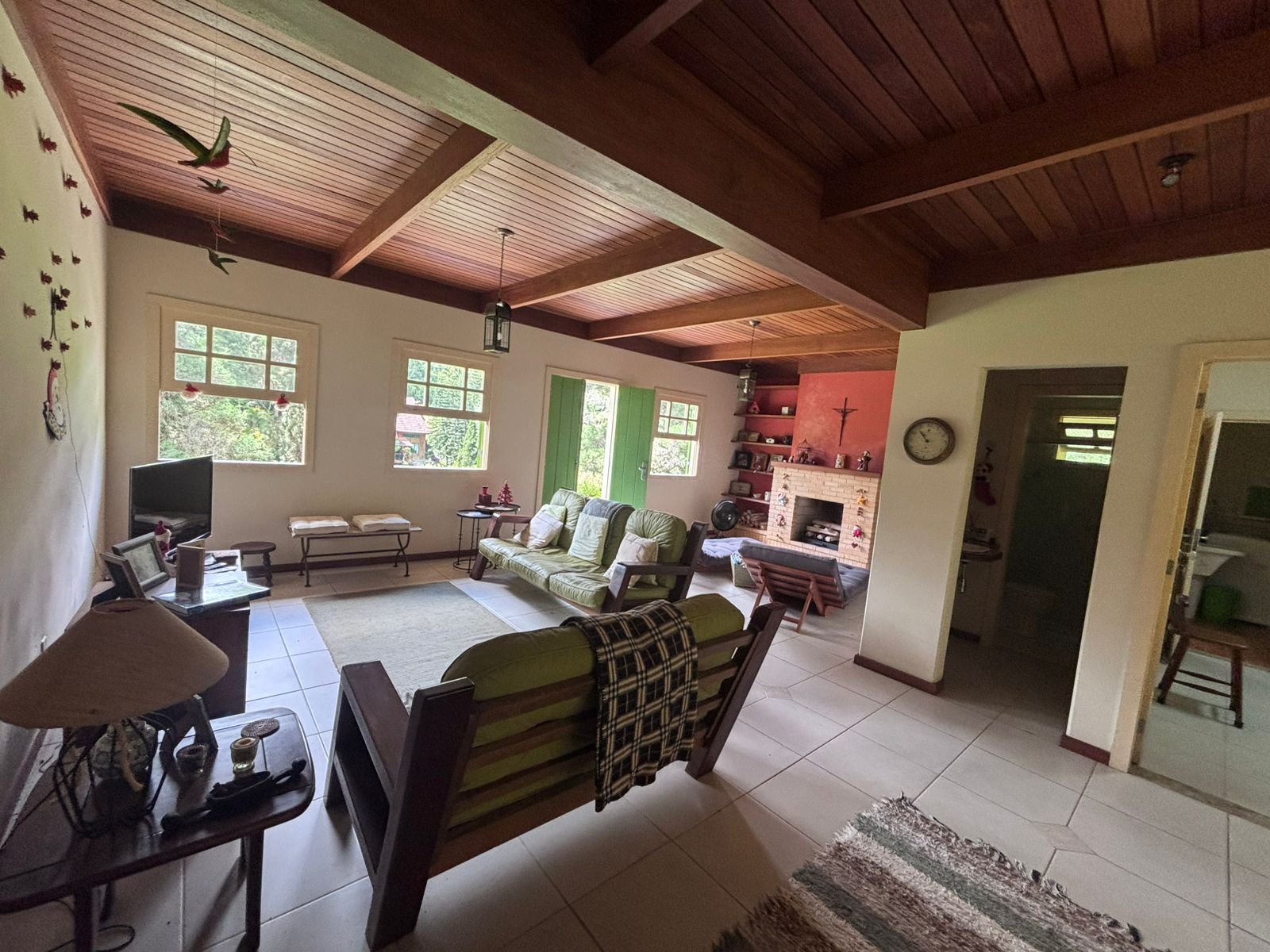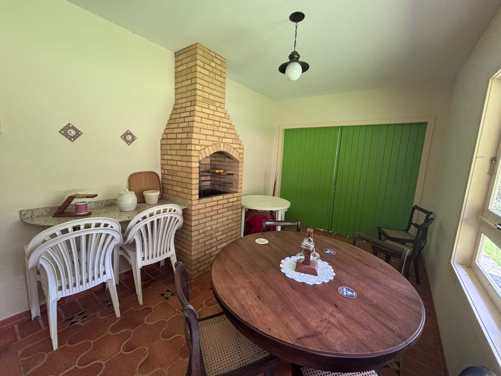 Casa impecável com salão em 3 ambientes (lareira), dois amplos quartos (suíte canadense), lindo lavabo, ampla cozinha montada, área serviço fechada, área churrasqueira.
